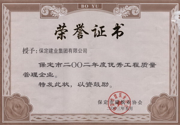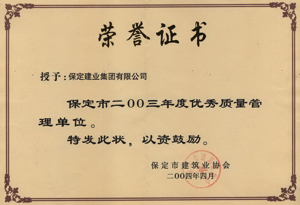 市03優(yōu)秀工程質量管理