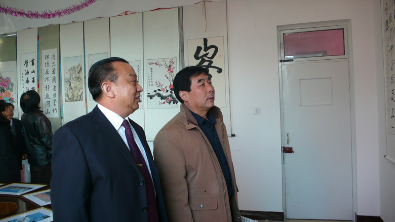 董事長張蘭柱陪同建設局領導參觀十周年書畫展